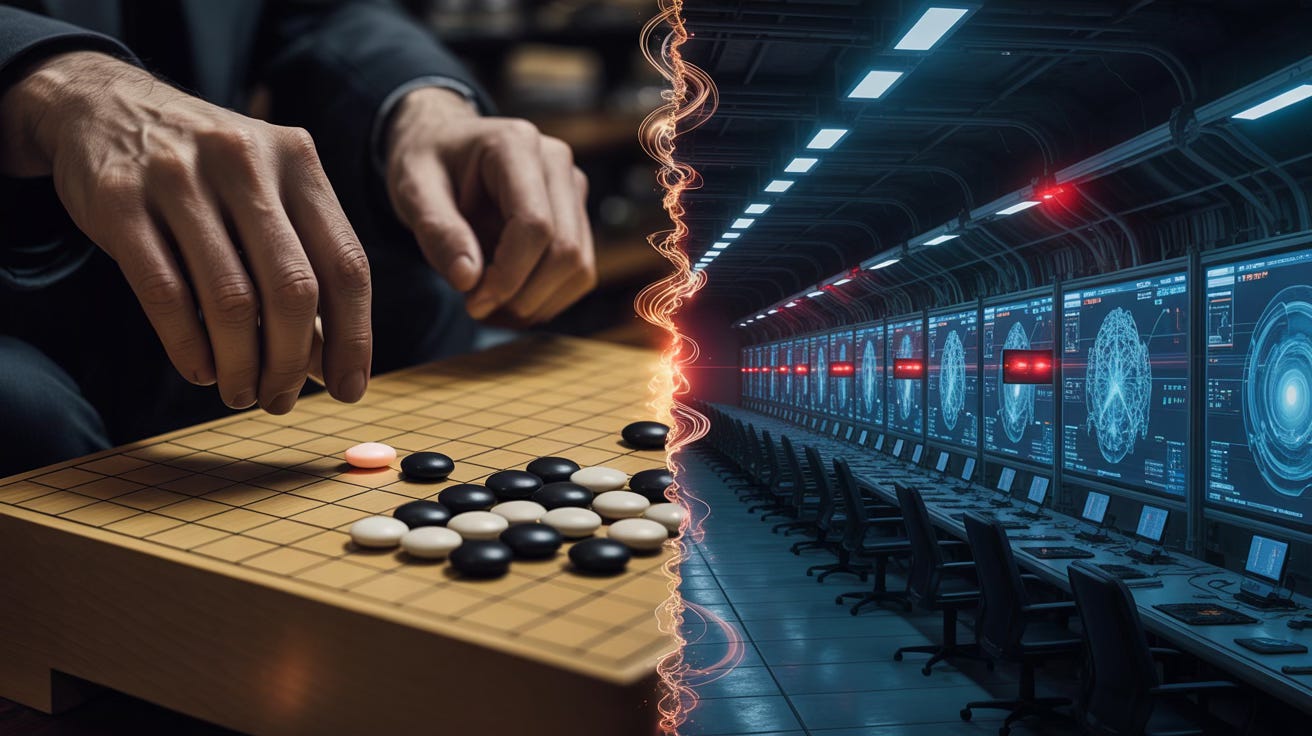 The perfect illustration of this limitation played out in 2016 during one of the most-watched AI demonstrations in history. Google's DeepMind had developed AlphaGo to challenge Lee Sedol, the reigning human Go grandmaster, at a game vastly more complex than chess—so complex that there are more possible Go games than atoms in the observable universe. The match seemed to confirm AI's dominance. AlphaGo won decisively, 4-1, leading Lee Sedol to retire permanently from competitive Go. His stated reason: "there is an entity that cannot be defeated." The AI appeared invincible.